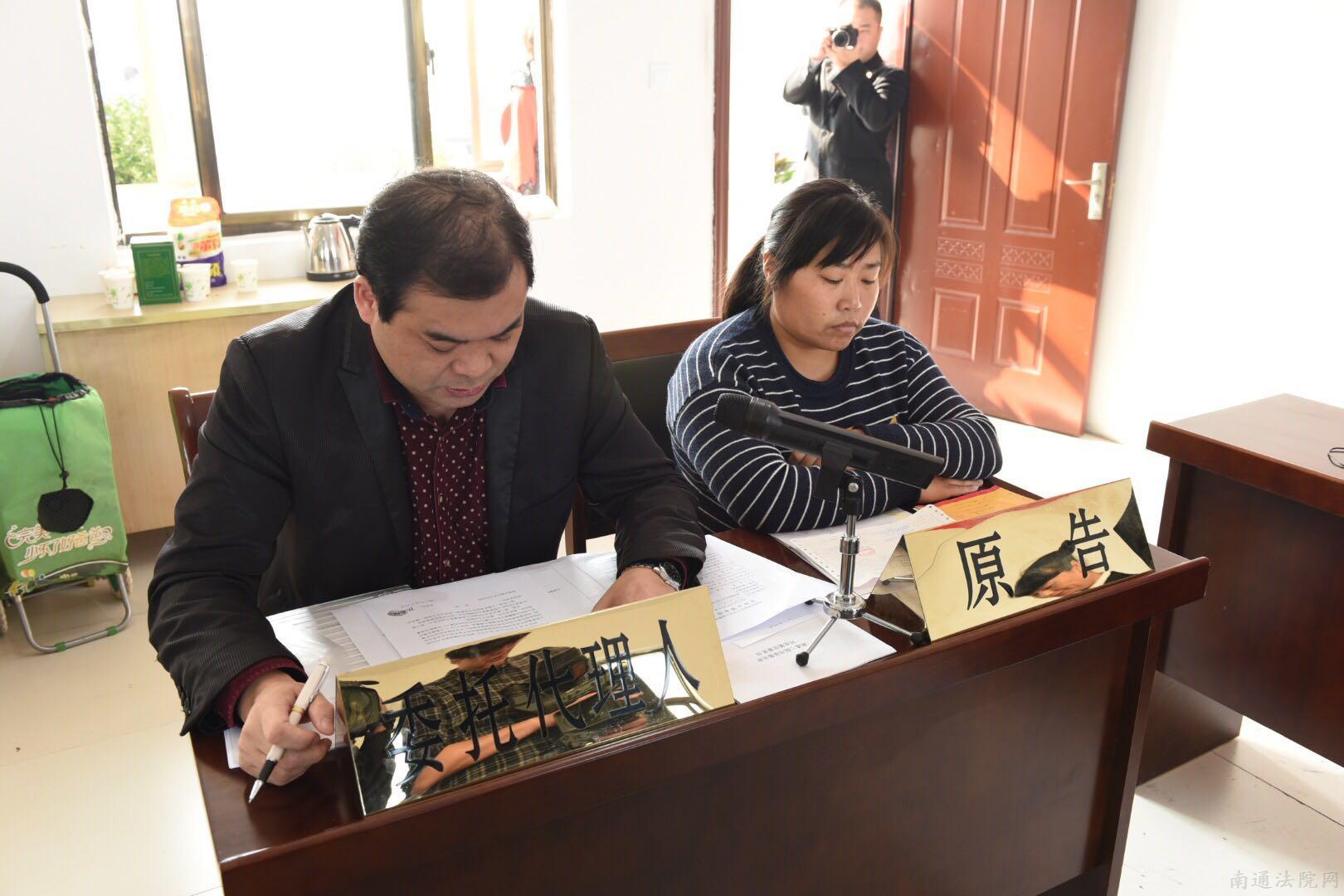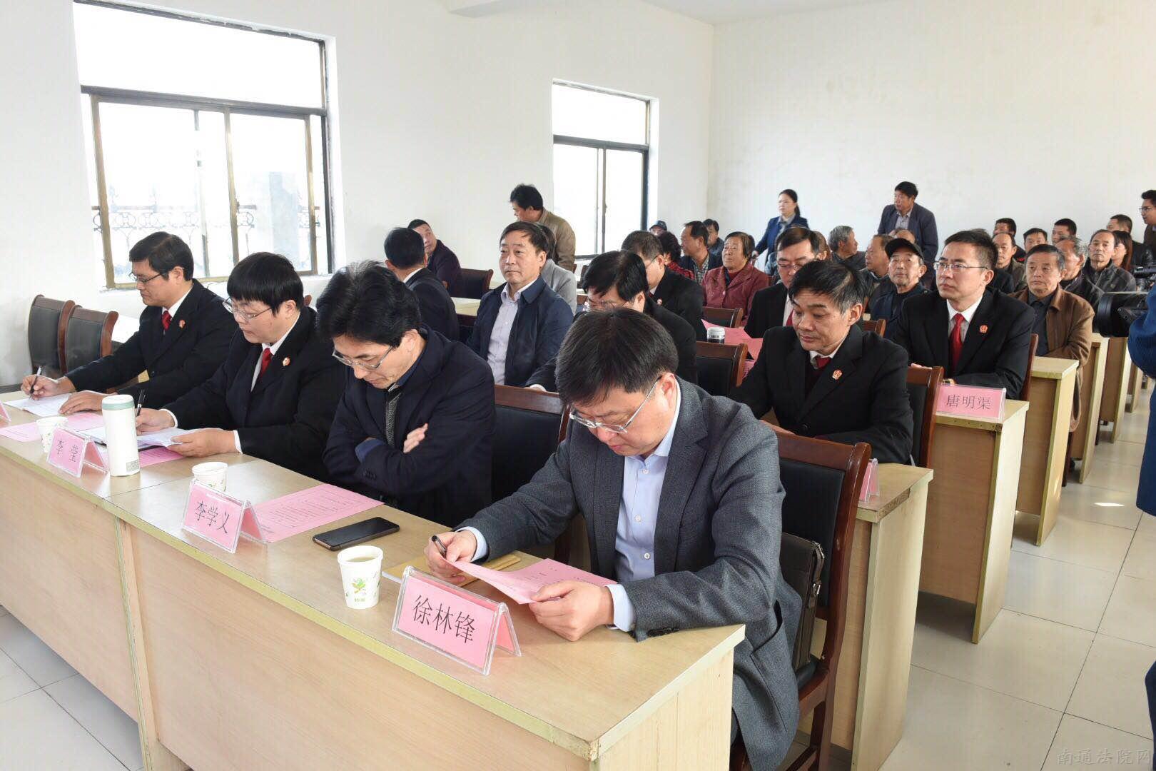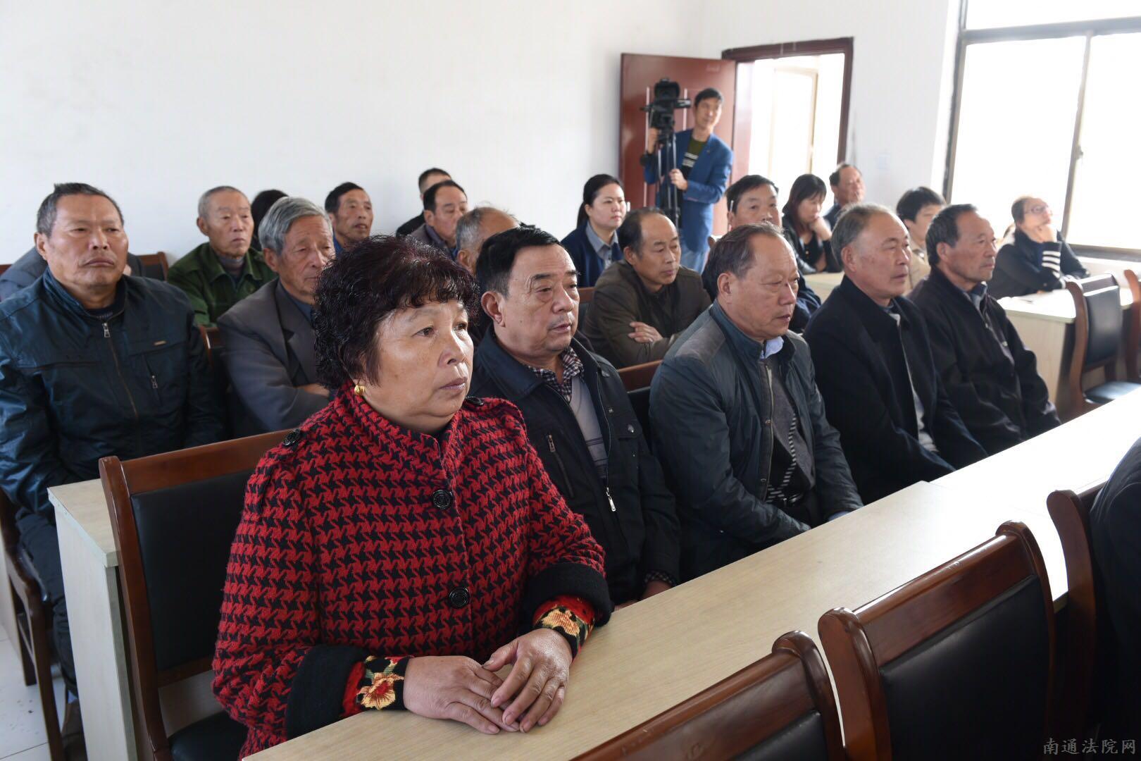 签约仪式结束后,通州法院高新区法庭在朝东圩村村委会开展巡回审判,对一起纠纷公开开庭,数十名热心村民认真旁听了庭审。