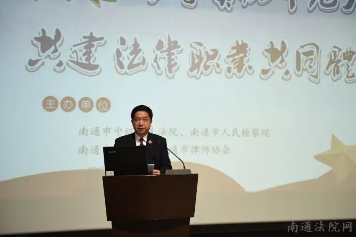 11月9日下午,由南通市中级法院青工委牵头,会同市检察院、市司法局、市律师协会联合举办法律职业共同体青年论坛,本次青年论坛的主题为“学习贯彻十九大精神共建法律职业共同体”。市中院党组书记、院长曹忠明,市检察院党组书记、检察长俞昕水,市司法局党组书记、局长缪平,市律师协会会长顾迎斌应邀参加本次论坛,来自市中院、市检察院、市司法局、团市委部分领导和中层负责人,及40周岁以下青年干警近200余人参加论坛。