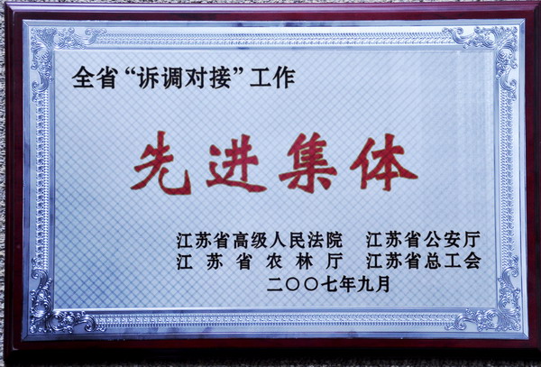 2007年,被评为全省“诉调对接”工作先进集体