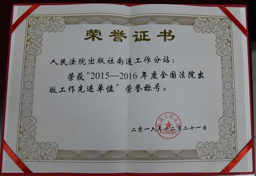 市中院荣获“2015-2016年度全国法院出版工作先进单位”荣誉称号