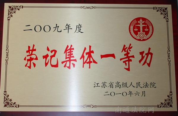 2010年,南通市港闸区人民法院被省法院荣记集体一等功